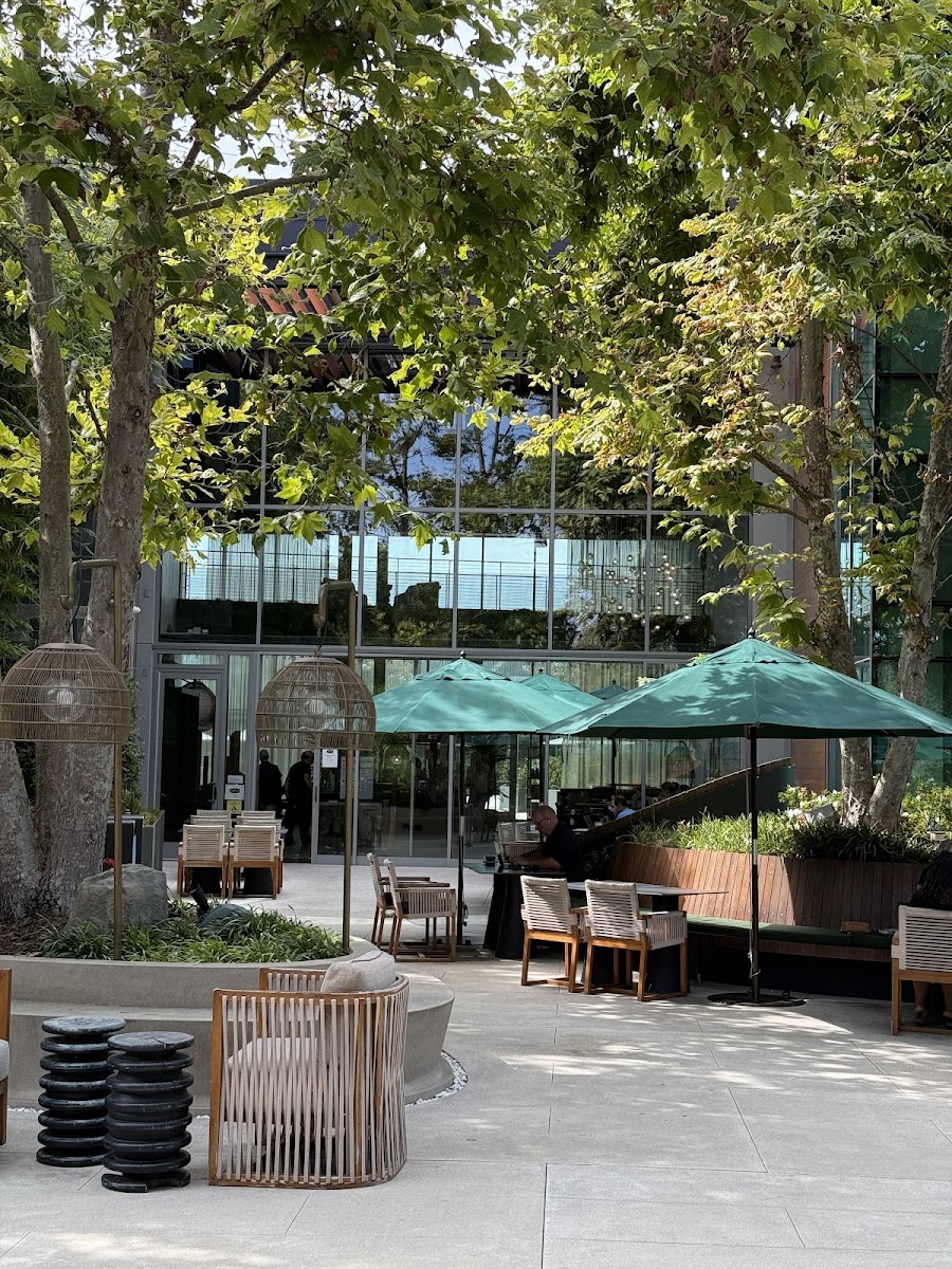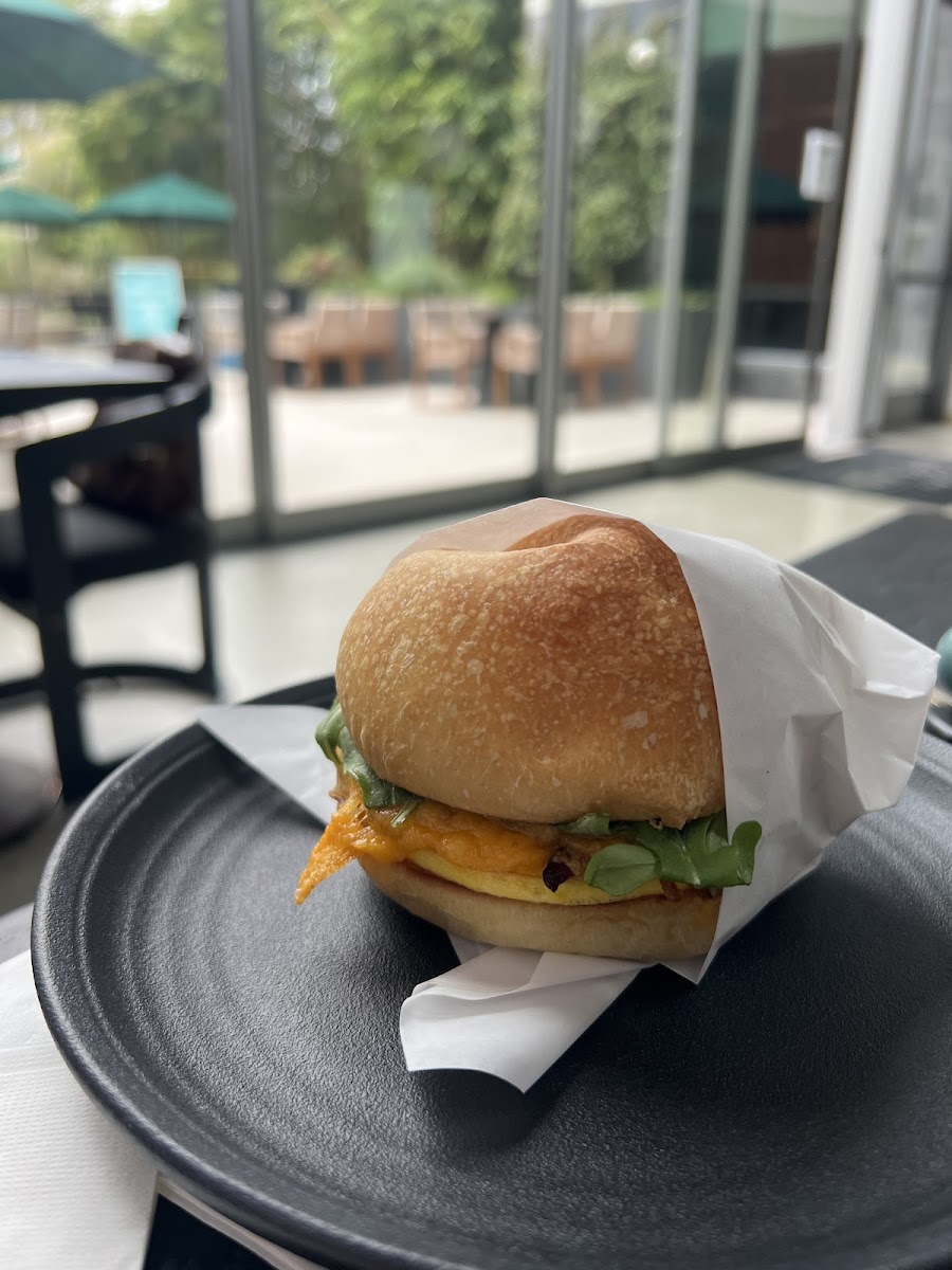 As you step inside, you're greeted by a stunning interior that seamlessly blends modern design with cozy vibes. The high vaulted ceilings and abundant natural light create an airy ambiance, inviting you to settle in for a leisurely meal or a productive work session. Whether you're catching up with friends, diving into a book, or getting some work done, the café provides a quiet and accommodating environment—perfect for both relaxation and productivity.